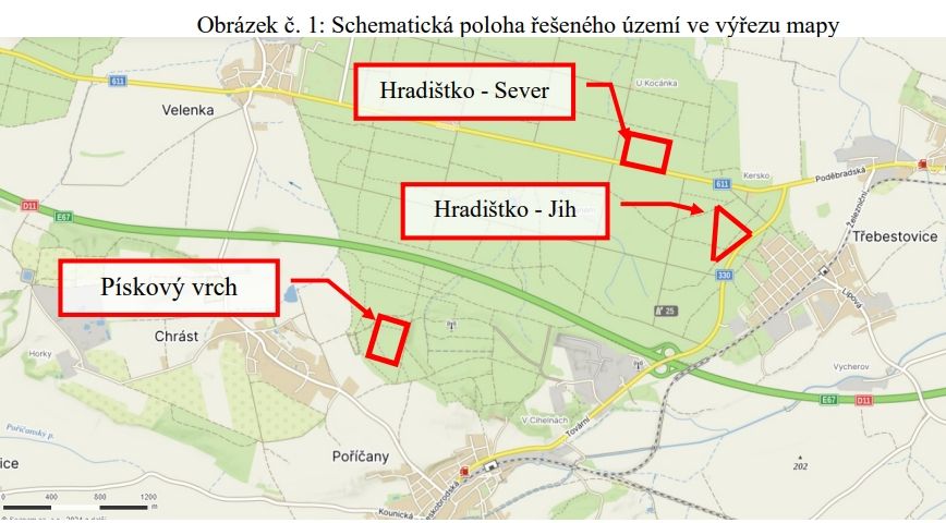 Podle mapových podkladů, které jsou součástí dokumentace, s níž firma HDTS Power žádá o povolení záměru, se jedná o tři lokality, kde by se měl štěrkopísek těžit zhruba dvacet let, ročně až 150 tisíc tun. Jedna lokalita je mezi obcemi Poříčany a Chrást jižně od hradecké dálnice D11, další dvě jsou poblíž silnice mezi Velenkou a Sadskou, vše je v katastru obce Hradištko.