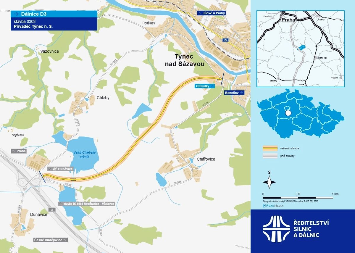 Mapa budoucí spojky mezi dálnicí D3 a Týncem nad Sázavou