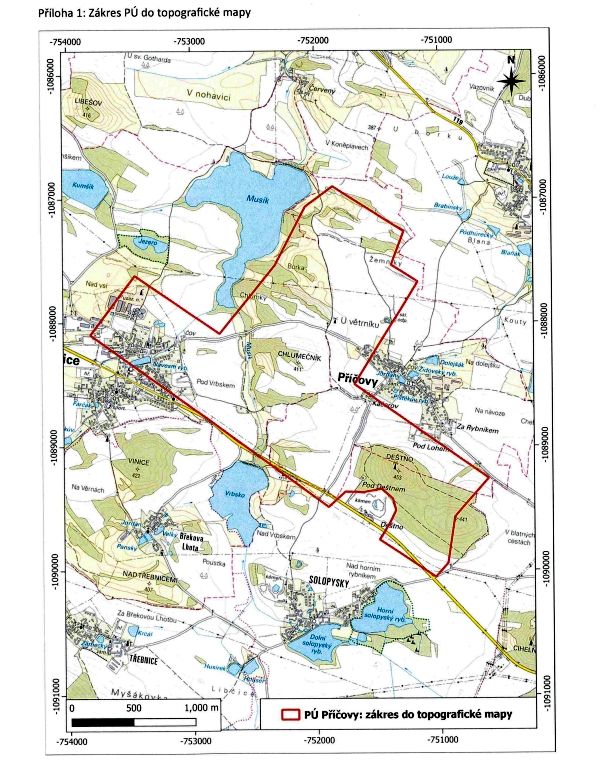 Území mezi obcemi Dublovice a Příčovy, kde by měl probíhat průzkum výskytu kovů. Zdroj Obec Dublovice