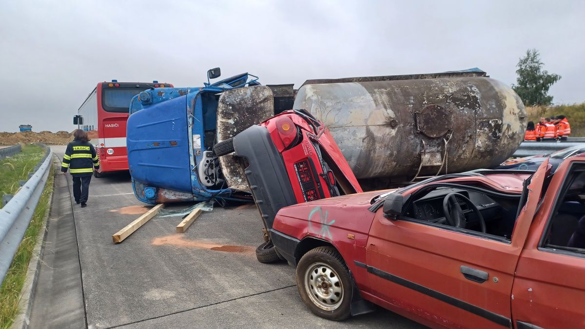 „Doprava na přilehlé dálnici není dotčená, pohybujeme se mimo na slepém rameni Pražského okruhu,“ ujistila mluvčí středočeských hasičů Tereza Sýkora Fliegerová.