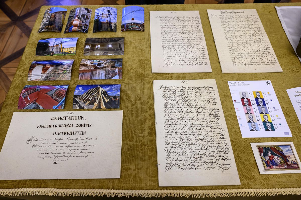 Schránku vloni na podzim objevili stavební dělníci, později se ukázalo, že ji přes 220 let nikdo neotevřel. „Tubus obsahoval tři zapečetěné balíčky, jeden s písemnostmi, druhý s tehdejšími mincemi a třetí měl sakrální charakter. Byl v něm dvojramenný kříž, voskový portrét a svatý obrázek,“ popsala kastelánka.