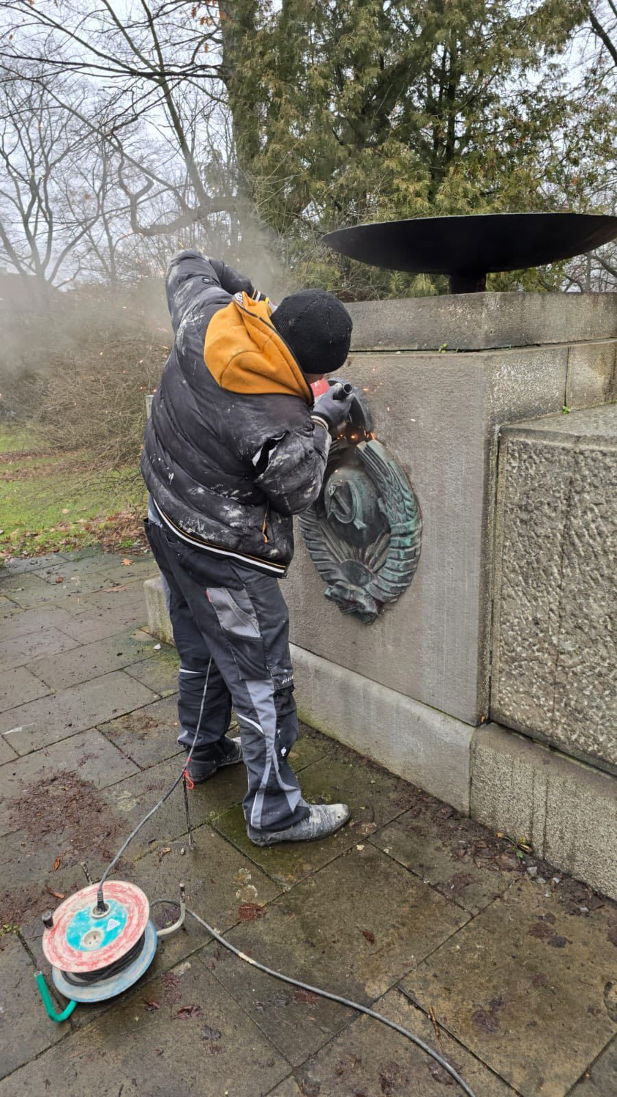 Poslední zbytky původních symbolů zmizely z památníku před vánočními svátky.