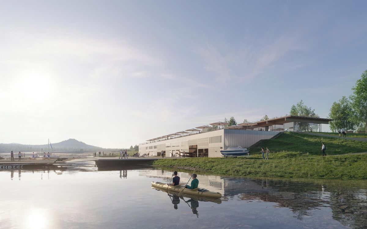 Součástí projektu je také areál vodních sportů se třemi hangáry a dvoupodlažním zázemím. Na něj naváže prosklená panoramatická restaurace, která bude fungovat jako samostatný výletní cíl, nikoli pouze jako zázemí kempu.