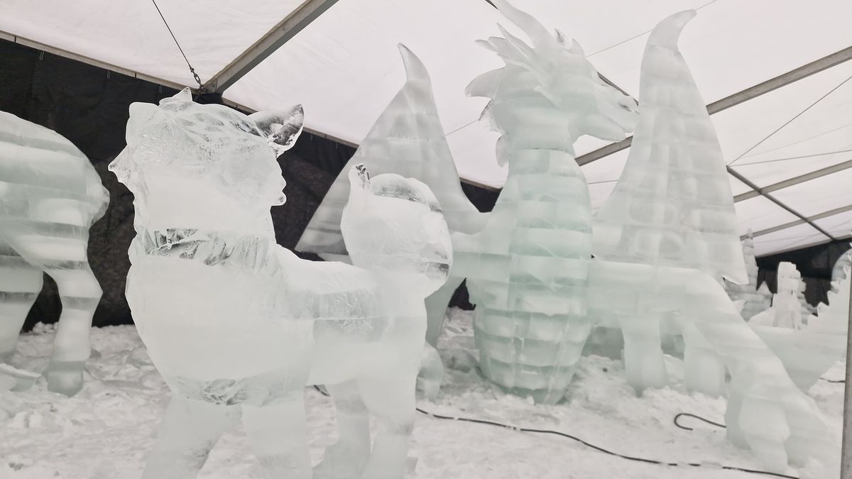 Největší sochou je letos mohutný drak, kterému nechybí ani ostny. Na něj umělci také spotřebovali nejvíce materiálu - až 250 ledových kostek. „Je tři metry vysoký a deset metrů dlouhý,“ uvedl Lessy.