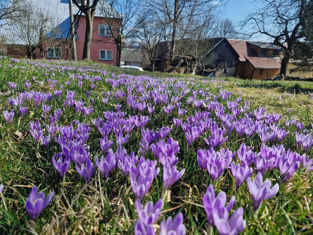 Tisíce květů vzácného šafránu bělokvětých vykvetly v těchto dnech hned na několika místech v Lačnově a okolí