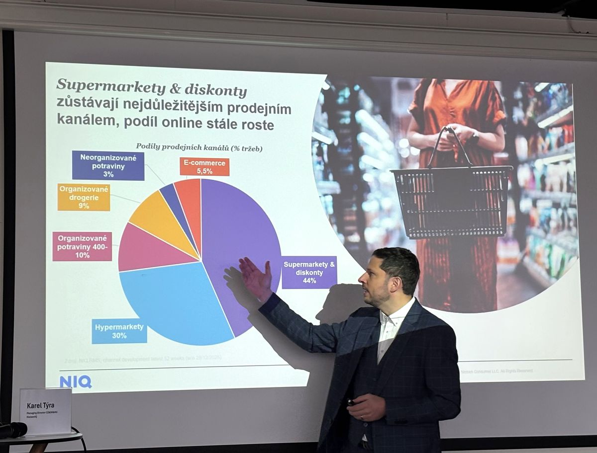 Data ukazují i to, kde Češi nejčastěji nakupují. Supermarkety a diskonty si drží zhruba 44 procent trhu, hypermarkety kolem 30 procent. Online prodej se blíží šesti procentům, i když kamenné prodejny zůstávají dominantní.