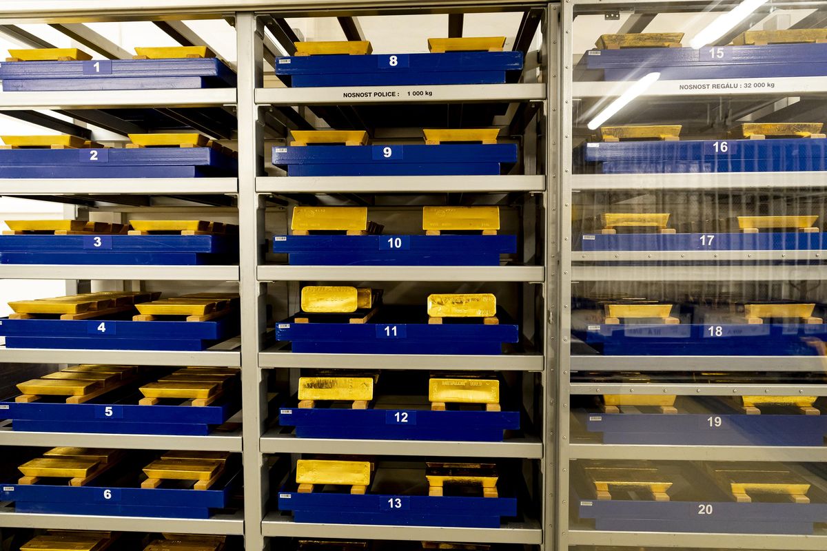 Zlaté cihly v trezoru České národní banky.