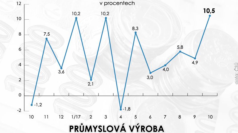 „Prim hraje i nadále zpracovatelský průmysl s výrobou automobilů. Produkce motorových vozidel v říjnu vzrostla o 10,8 procenta a nejvíce přispěla k růstu celého průmyslu. Ještě více, z pohledu meziročního růstu, se dařilo energetice s růstem o 15,4 procenta. A dařilo se, pokud to lze takto říci, i těžebnímu průmyslu, kde produkce po předchozích měsících poklesu vzrostla o 3,5 procenta,” řekl Novinkám analytik společnosti Akcenta Miroslav Novák.