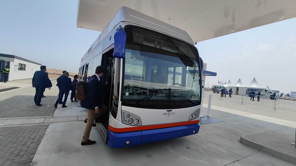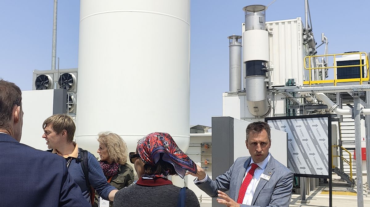 Nově otevřený závod leží v poušti 15 kilometrů od přístavu Walvis Bay. Stál 30 milionů eur, tedy 730 milionů korun. K výrobě vodíku využívá sluneční energii, na ploše 6,5 hektaru zahrnuje fotovoltaický park, bateriové úložiště i výrobnu plynu.
