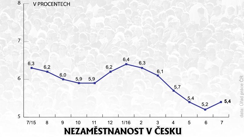 Nejhorší situace je v Ústeckém kraji, kde nezaměstnanost činila 8,3 procenta. Nejnižší nezaměstnanost vykázaly v červenci okresy Rychnov nad Kněžnou (dvě procenta) a Praha-východ (2,1 procenta). Naopak nejvyšší je tradičně na Mostecku (11 procent) a Karvinsku (10,8 procenta).