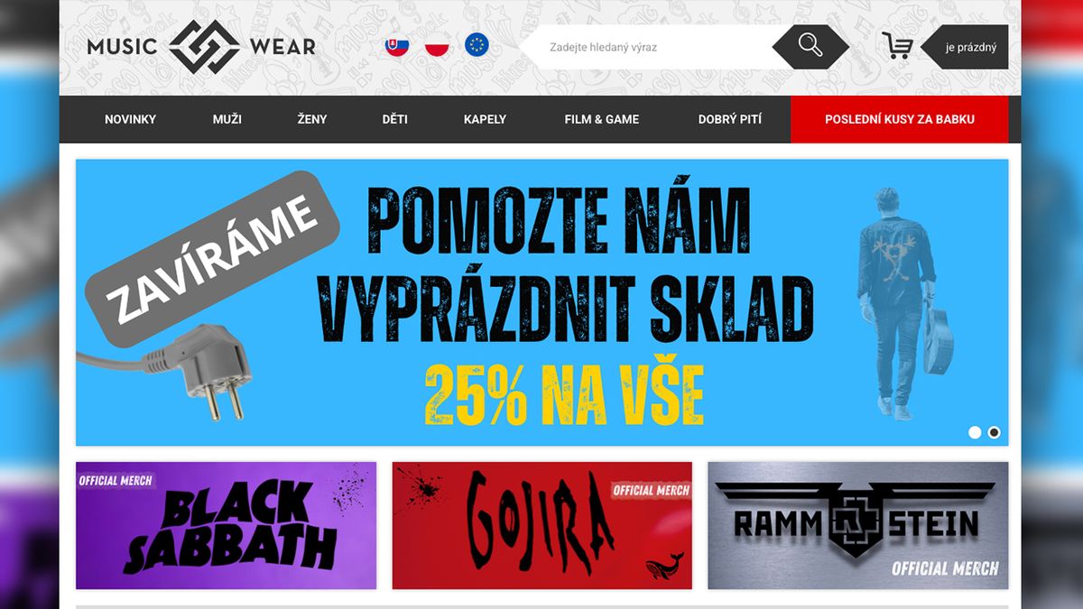 „Tato zpráva se nám nepíše snadno. Po třinácti letech provozu ukončujeme činnost e-shopu,“ oznámil Musicwear svým zákazníkům v pondělním newsletteru a zahájil totální výprodej se slevou 25 procent.