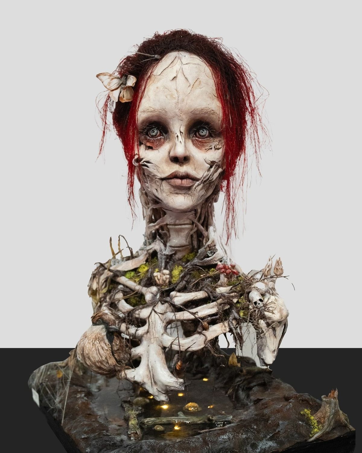 „Dort je z modelovací čokolády a jeho příprava mi trvala téměř tři týdny. Jenom vlasy zabraly asi 80 hodin, každý je potřeba ze želatiny vytáhnout samostatně,“ říká Lucie Charvátová. Inspiraci čerpala z vlastní fantazie: „Vymyslela jsem si postavu – bohyni lesa, která po pokácení posledního stromu umírá. Poté se vynořuje z bažin a jako bludička láká pocestné. Pojmenovala jsem ji Valeora,“ přibližuje cukrářka.