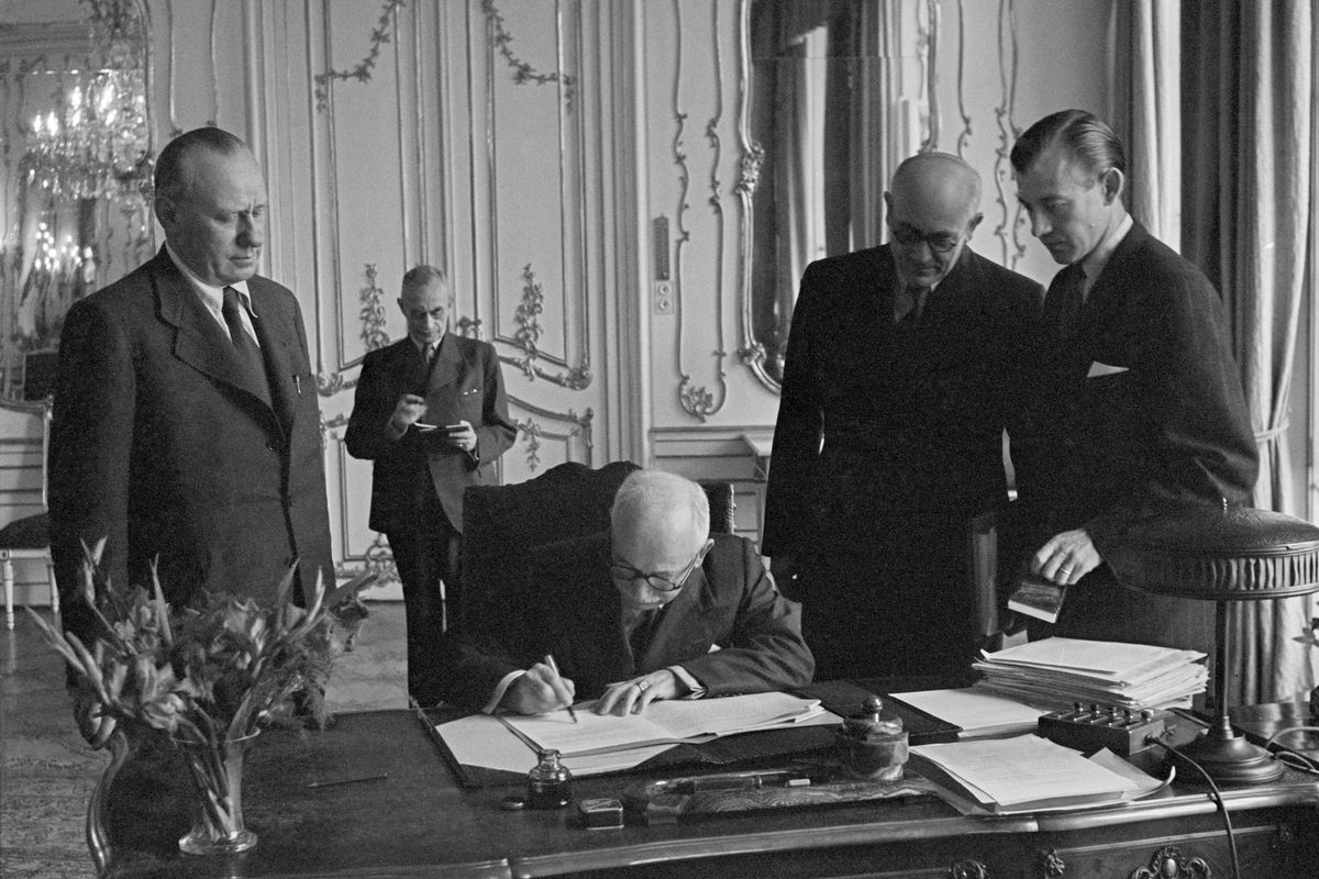 Prezident republiky Edvard Beneš podepisuje 2.srpna 1945 na Pražském hradě Ústavní dekret prezidenta republiky č. 33/1945 Sb., na jehož základě českoslovenští občané, kteří podle předpisů okupační moci nabyli německé nebo maďarské státní příslušnosti, pozbyli dnem nabytí této příslušnosti československého občanství.