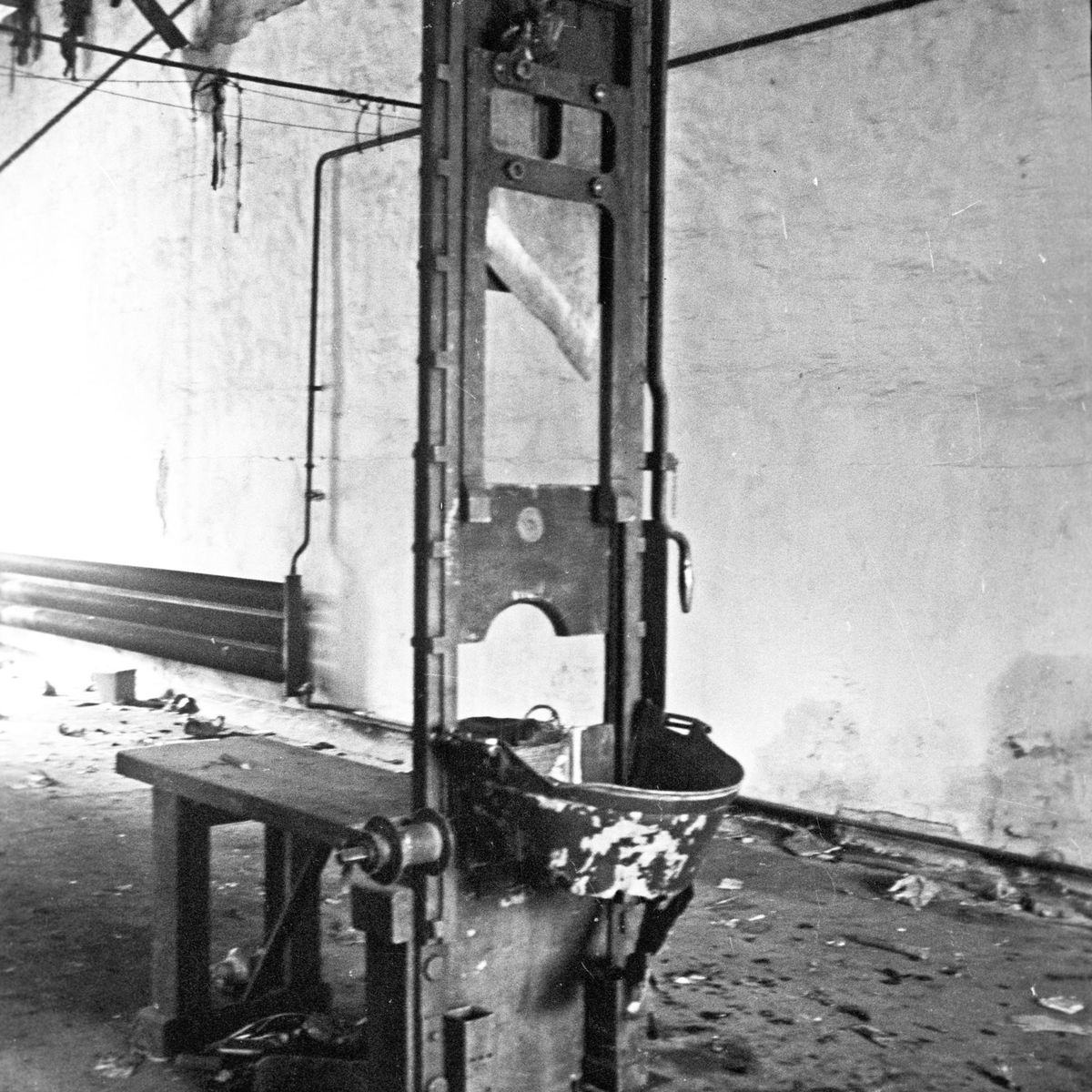 Gilotina, která na centrálním popravišti v Berlíně- Plötzensee připravila o život tisíce lidí. Snímek pochází z jara 1945. Foto: Getty Images