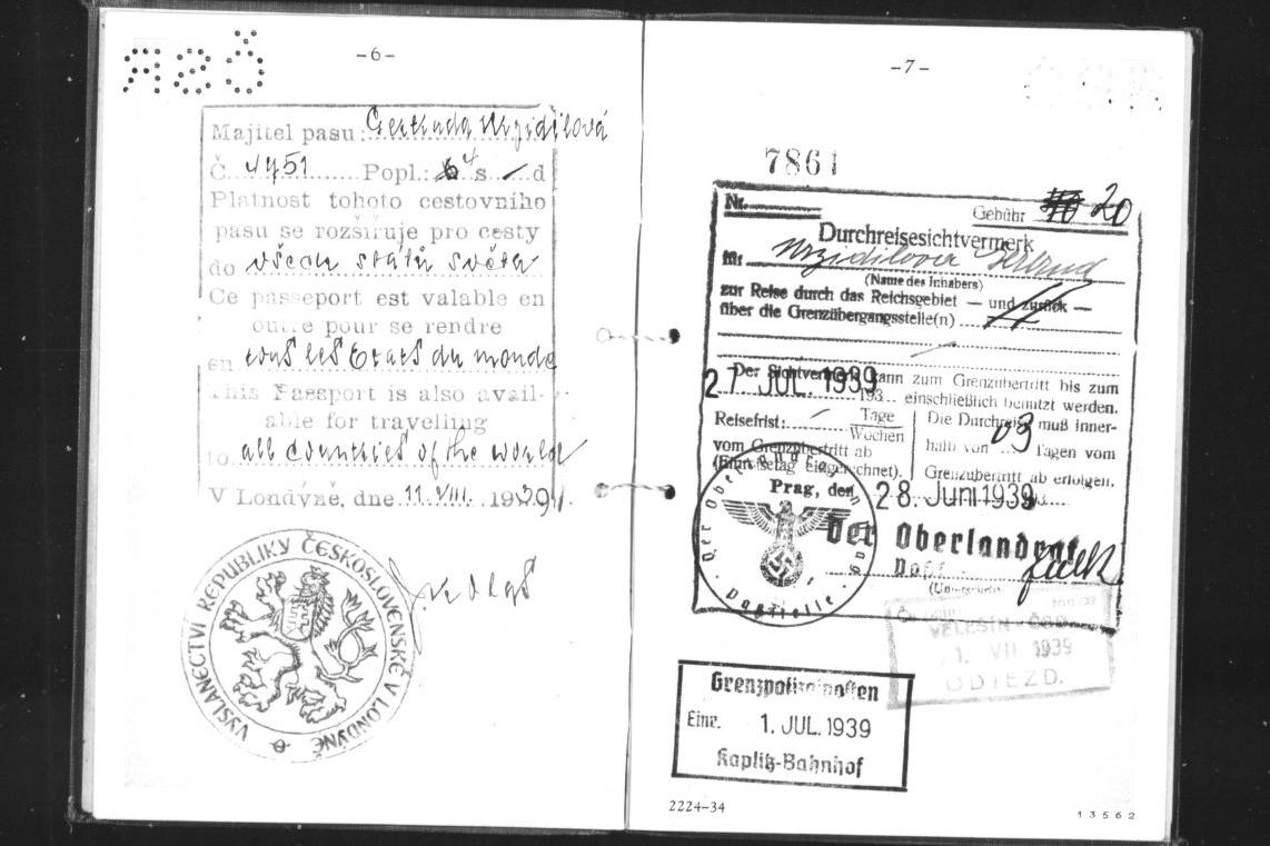 Urzidilovi prchají z okupovaných Čech vlakem v noci z 30. června na 1. července 1939. Se dvěma nenápadnými kufry a padělaným výjezdním povolením. „Můj manžel byl velmi rozrušený,“ vzpomínala později Gertruda, „protože do vlaku přišlo gestapo a prověřovalo cestující. Manžel byl nervózní a to bylo naše štěstí, protože z rozrušení podal gestapu svůj pas a potom můj a řekl: ´Toto je pas mého manžela.´ A gestapáci se začali smát a opakovali: ´Pas mého manžela.´ A vzali si je, potvrdili razítkem s orlicí a hákovým křížem a my byli venku.“