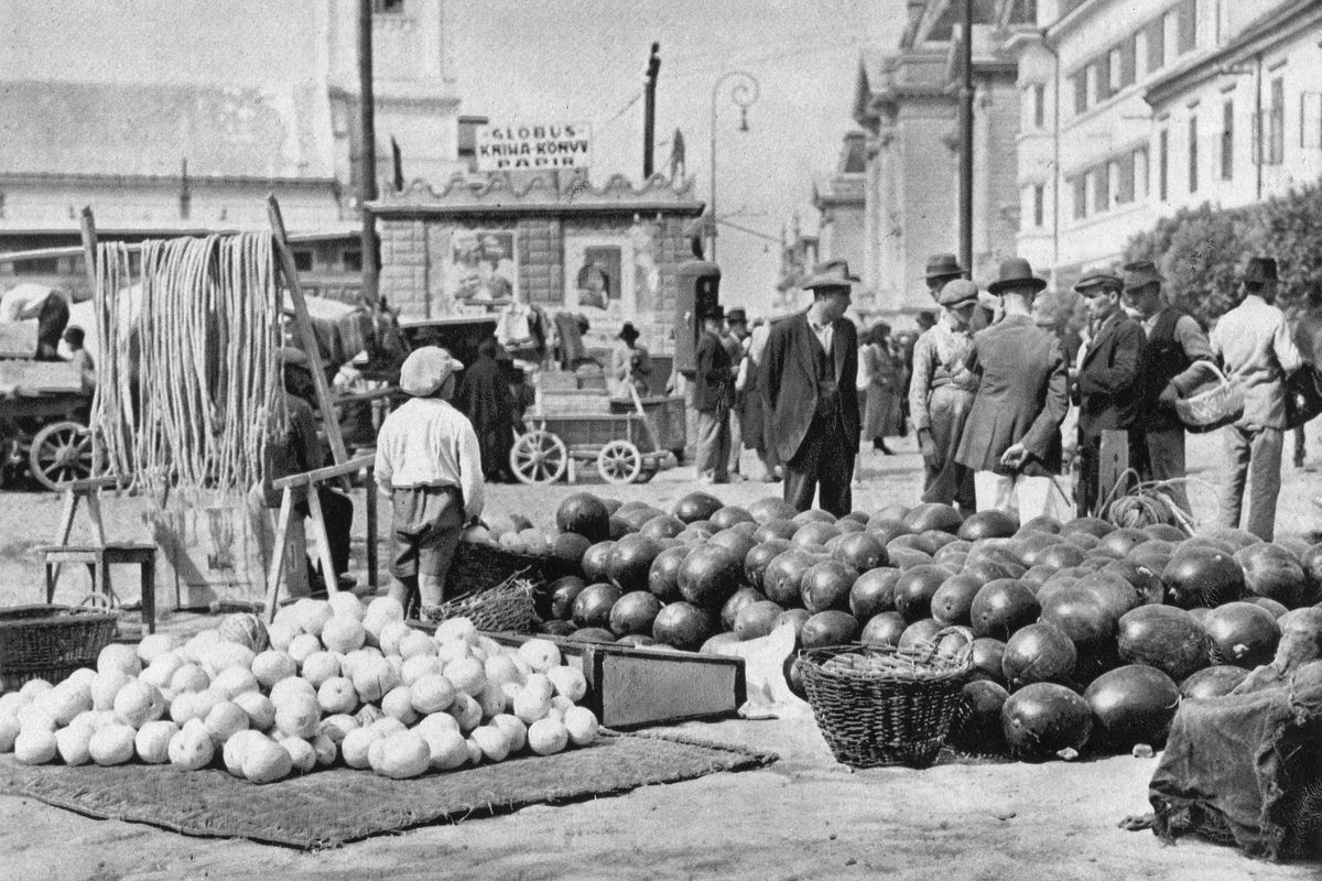 Podkarpatská Rus ve 30. létech 20. století. Záběr z trhu v Berehově.