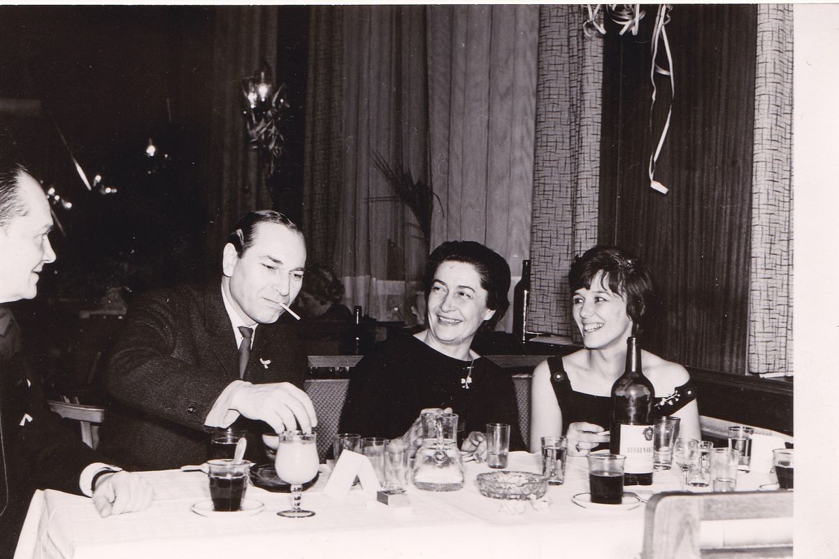 Magda Husáková-Lokvencová (třetí zleva) se Ctiborem Filčíkem (druhý zleva). Archiv Husákovy rodiny