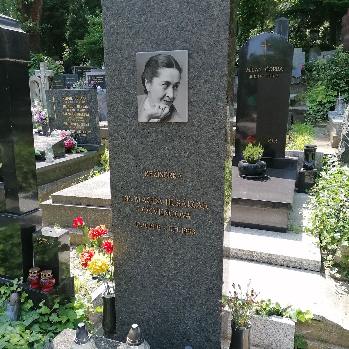 Náhrobní kámen Magdy Husákové-Lokvencové na hřbitově Slavičí údolí v Bratislavě. Archiv autora