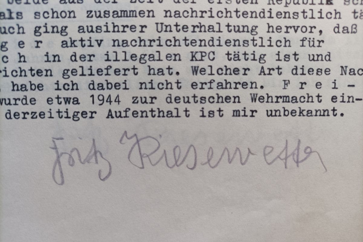 Kiesewetterův podpis na jednom z dokumentů spojených s jeho výslechy a výpověďmi před soudem.