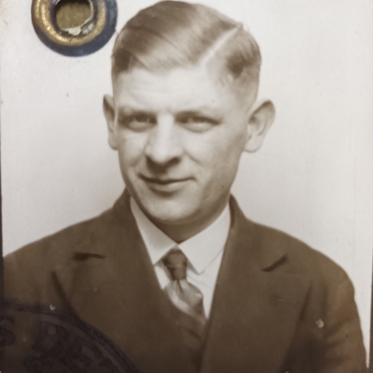 Portrétová fotografie Fritze Kiesewettera z jeho cestovního pasu vydaného v roce 1930.