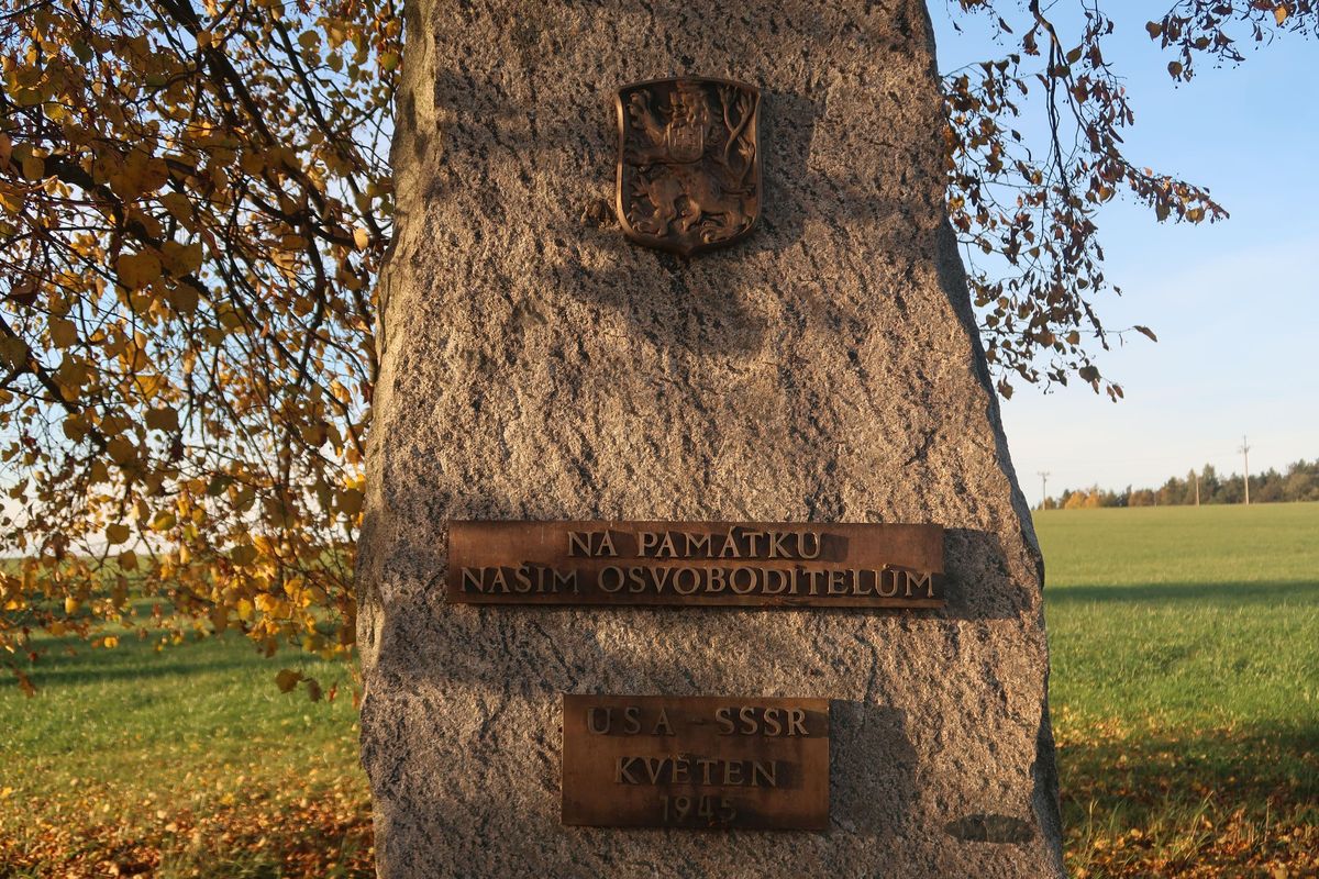 Demarkační linii tady připomíná ještě jeden pomník. S příznačným osudem – odhalili jej v roce 1953 jako poděkování Rudé armádě, teprve po sametové revoluci na něm přibyl nápis, který pamatoval i na Američany.