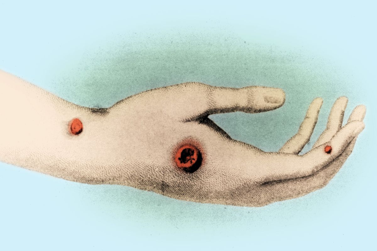 Na historické ilustraci puchýře charakteristické pro neštovice.