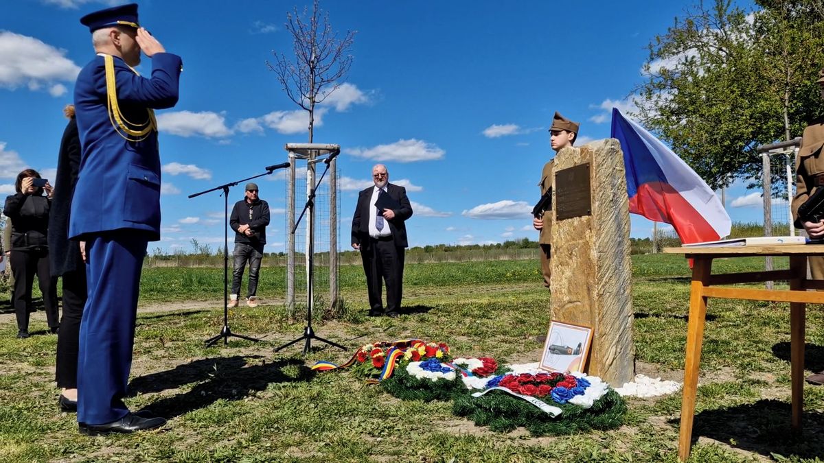 Pomník rumunského pilota, který se podílel na osvobození Československa, odhalila velvyslankyně Rumunska Maria-Antoaneta Barta.