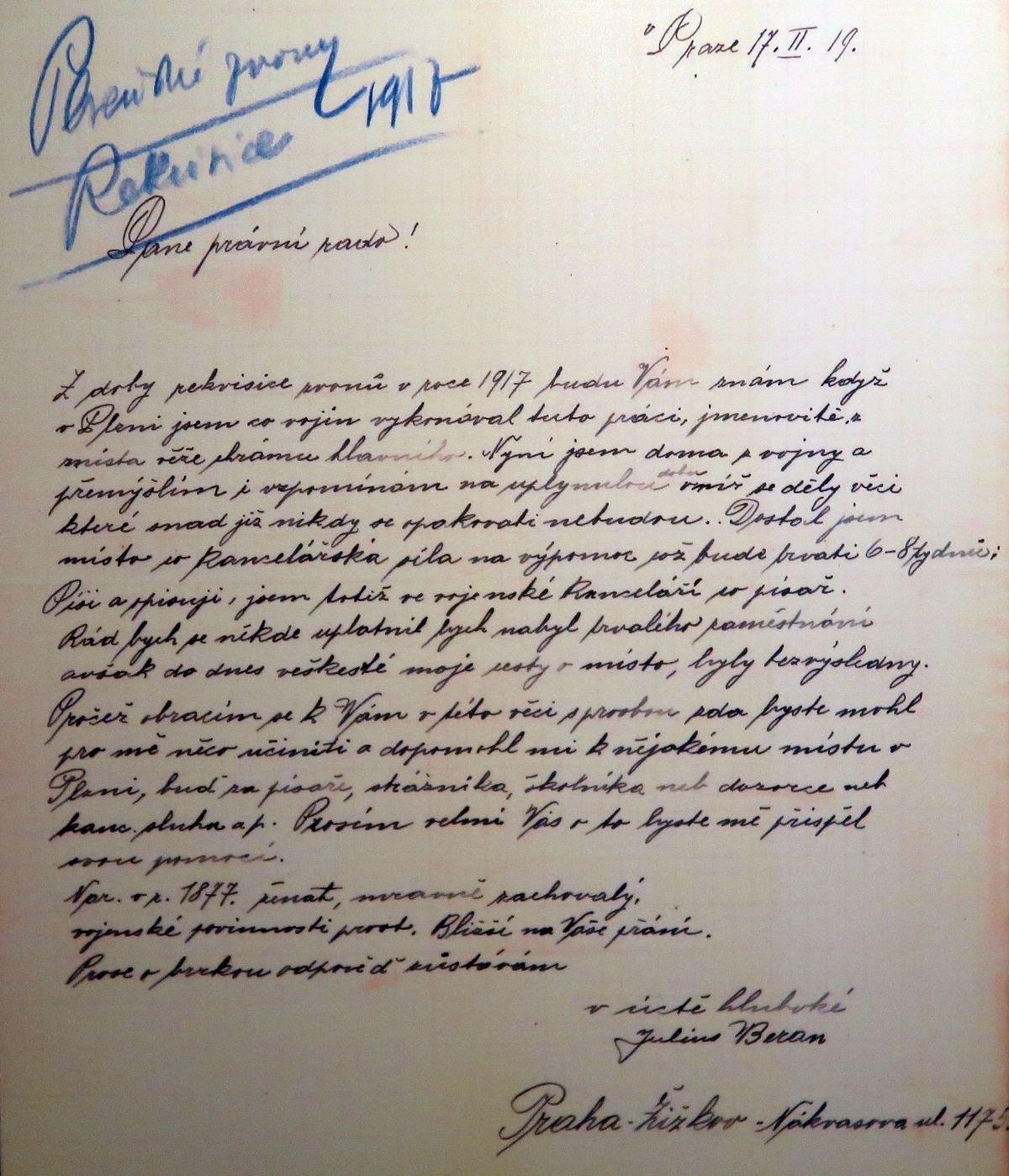 A takto Beran žádal magistrát o místo…