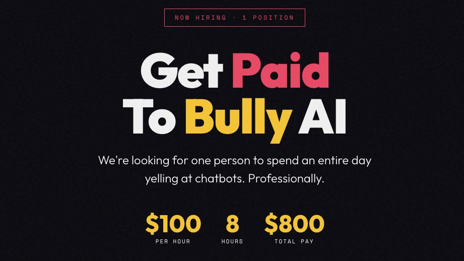 „Strávíte osm hodin denně interakcí s předními chatboty s umělou inteligencí – vaším jediným úkolem bude brutální upřímnost ohledně toho, jak frustrující jsou. Požádejte je, aby si pamatovali určité věci, a pak sledujte, jak je zapomínají. Ptejte se znovu, dokumentujte jejich snažení a chaos,“ uvádí se na stránkách startupu v popisu jediné pracovní pozice, která výslovně láká na to, že za peníze bude moci dotyčný šikanovat AI.