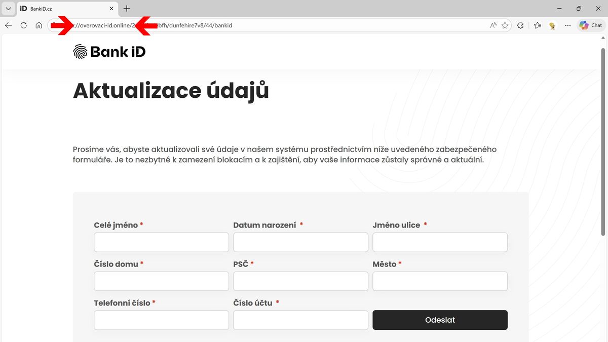 Na podvodných stránkách pak chtějí kyberšmejdi vyplnit řadu údajů: jméno, datum narození, adresu, telefonní číslo a číslo účtu. Zadávat přihlašovací údaje do bankovnictví po uživatelích nikdo nechce. I proto se mohou nechat někteří uživatelé snadno zmást, protože o kdovíjak citlivé informace nejde – například u podnikatelů jde o data, která jsou často dohledatelná i na jejich oficiálních stránkách.