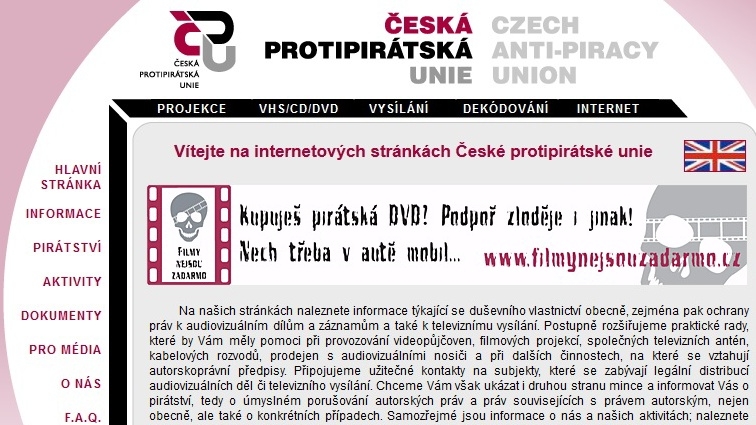 Krátce po 18. hodině byly stránky České protipirátské unie nedostupné, provoz na nich se obnovil později večer.