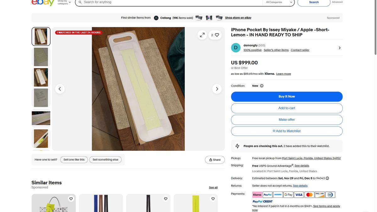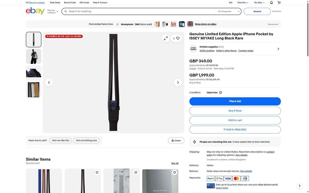 Paradoxně mezi nejlevnější nabídky patří inzeráty s cenovkou 699 dolarů (14 500 Kč), výjimkou ale nejsou ani pouzdra za 999 dolarů (20 700 Kč). V jednom inzerátu si dokonce překupník novinku cenil na 1999 liber (55 270 Kč) při možnosti „kup teď“, aukce nicméně startovala na 349 librách (9680 Kč).