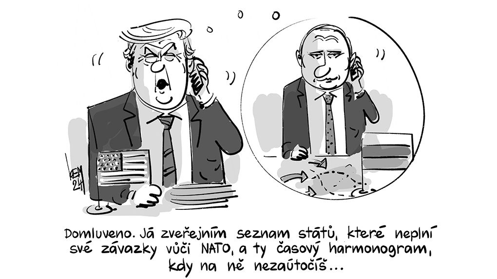 Domluveno. Já zveřejním seznam států, které neplní své závazky vůči NATO, a ty časový harmonogram, kdy na ně nezaútočíš…