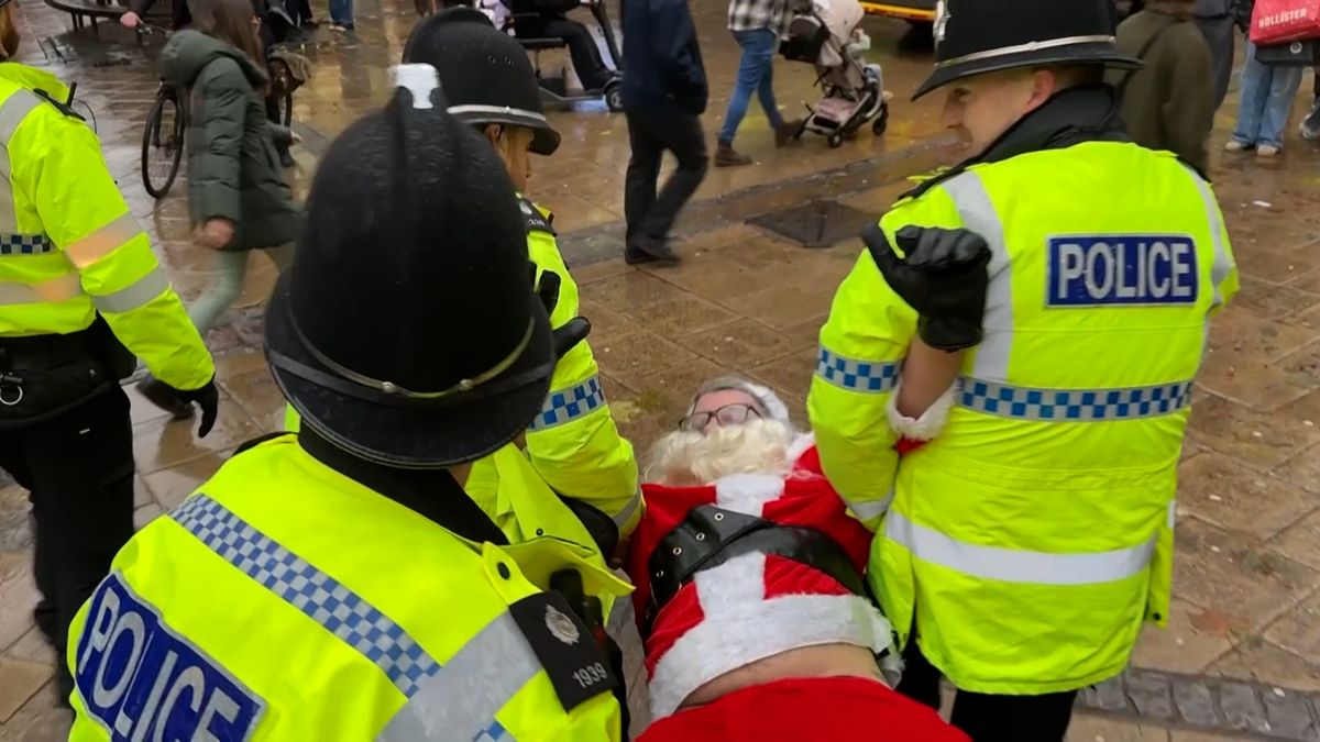 V sobotu 29. listopadu odpoledne se v centru města Norwich na východě Anglie konala menší demonstrace na podporu skupiny Palestine Action, kterou britský parlament letos v létě zařadil mezi teroristické organizace. Kolemjdoucí však mnohem více zaujala scéna ze zatýkání jednoho z účastníků, jenž na sobě měl kostým Santa Clause.