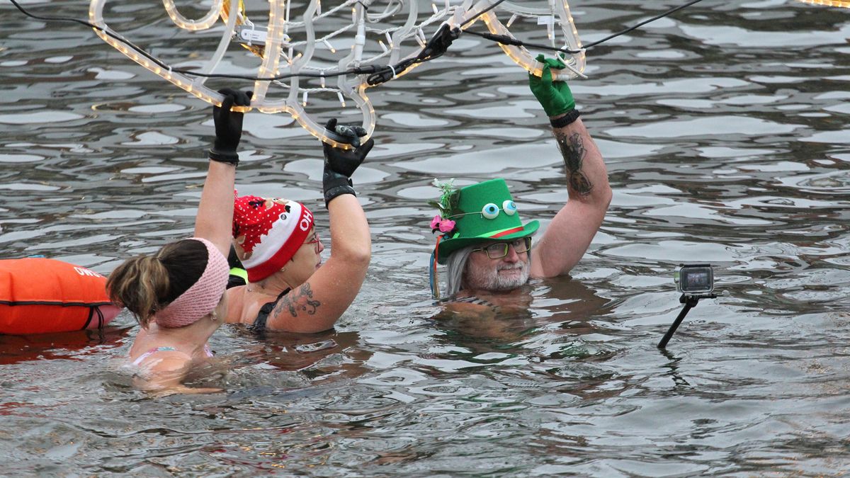 Účastníkům hlásil, že má vzduch i voda tři stupně. „Už jsem tady zažil i vodu s teplotou kolem nuly, to bylo horší,“ porovnával Holinský, nejzkušenější z přihlášených účastníků. „Jestli to štípe? Trochu,“ zhodnotil, když po několika minutách vylezl na břeh.