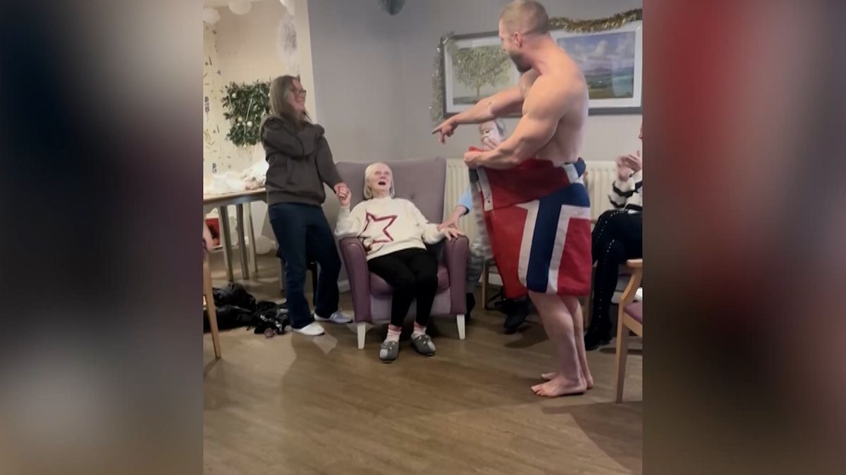 Když se dcery Elaine a Vicky zeptaly vedení domova, zda by mohly objednat pro svou matku Sue Royalovou striptýzového umělce, personál jim „s radostí“ vyhověl, napsala tisková agentura AP, která záběry zprostředkovala médiím.