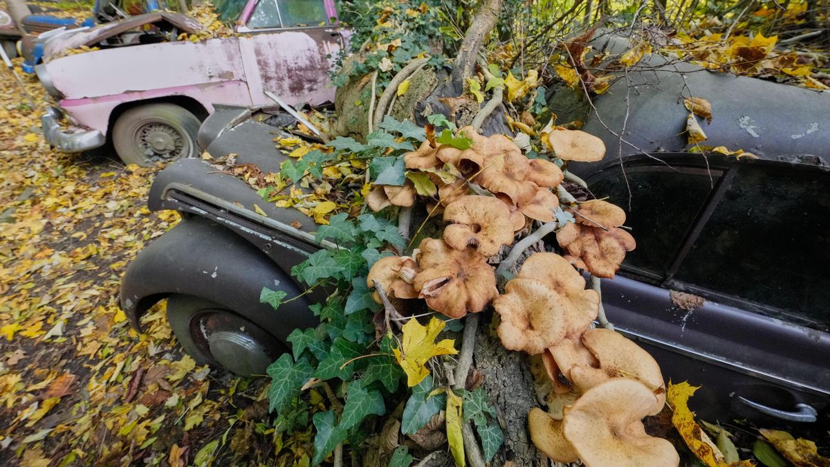 Mohly to být klenoty soukromých sbírek, ale po 25 letech bez péče z nich jsou rezavé a rozpadlé důkazy pomíjivosti techniky. Německý sběratel Michael Frölich si před čtvrtstoletím nadělil k narozeninám zajímavý projekt. Koupil 50 aut stejně starých jako on - s rokem výroby 1950 - a umístil je do soukromého lesa. Chce tak ukázat, že příroda je silnější. Místu nedaleko města Mettmann u Düsseldorf se teď říká „hřbitov aut“ nebo „automauzoleum“.