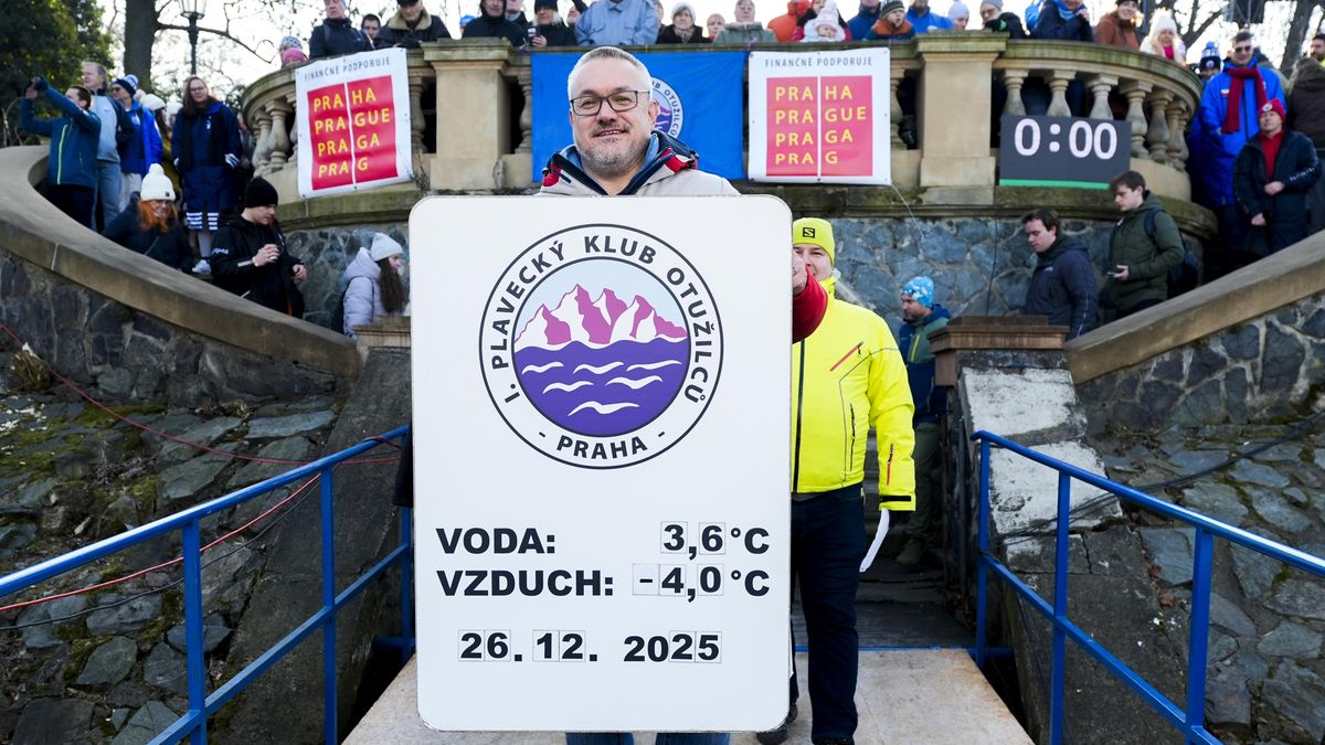 FOTO: Stovky otužilců ve Vltavě a teplota vody pod čtyřmi stupni