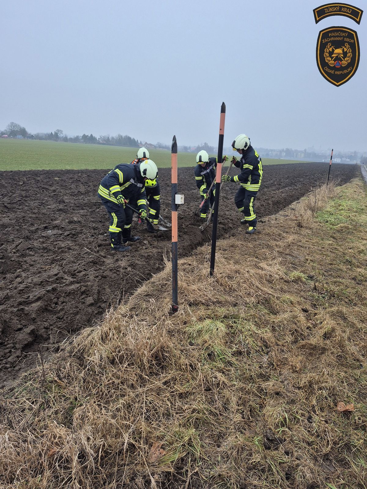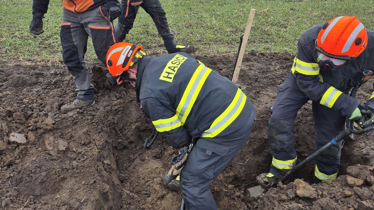 Na závěr zásahu hasiči opět vzali lopaty do rukou a výkop pečlivě zahrnuli hlínou. Poté se obě jednotky vrátily zpět na své základny.