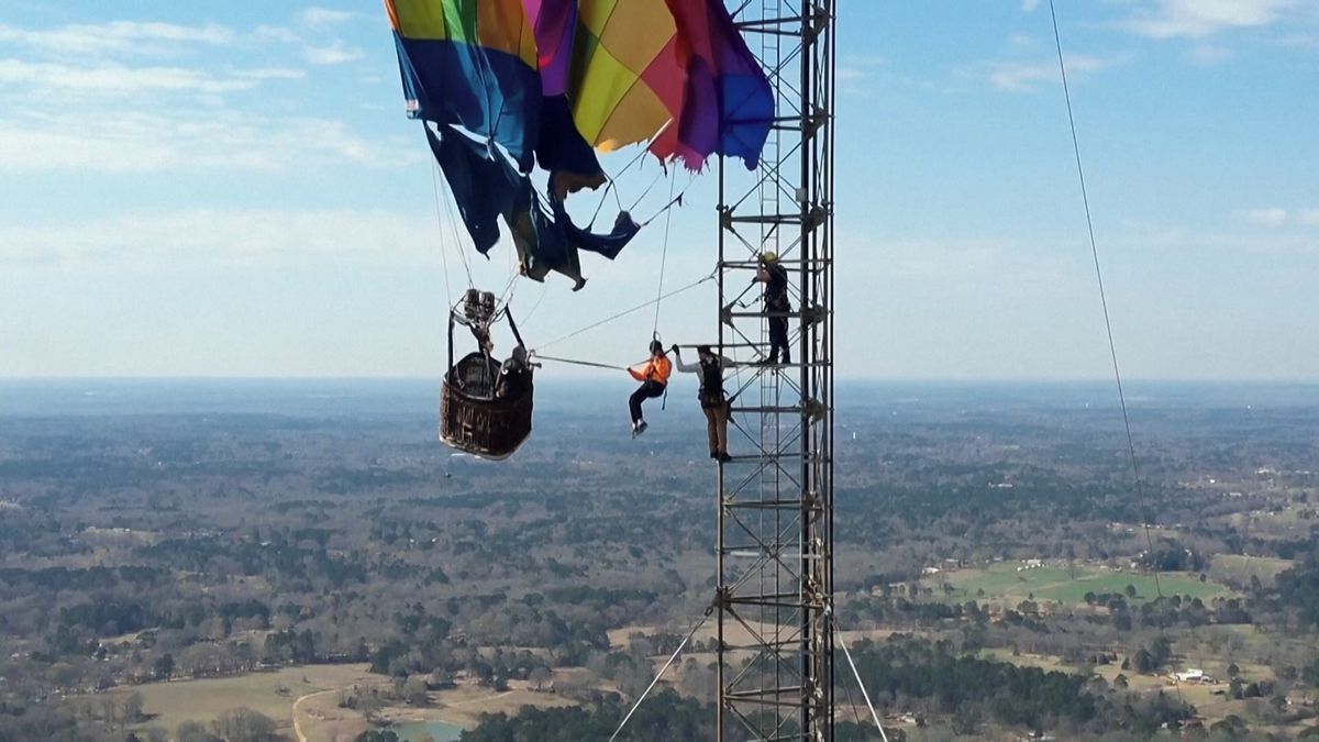 Balón podle všeho skončil na přes 900 stop vysoké konstrukci (274 metrů) za vcelku dramatických okolností, protože podle záběrů, které zprostředkovala agentura AP, je zřejmé, že byl dost značně potrhaný. Dvoučlenná posádka se naštěstí dokázala udržet v koši, a tak zbývalo jen čekat, než na místo dorazí záchranáři.