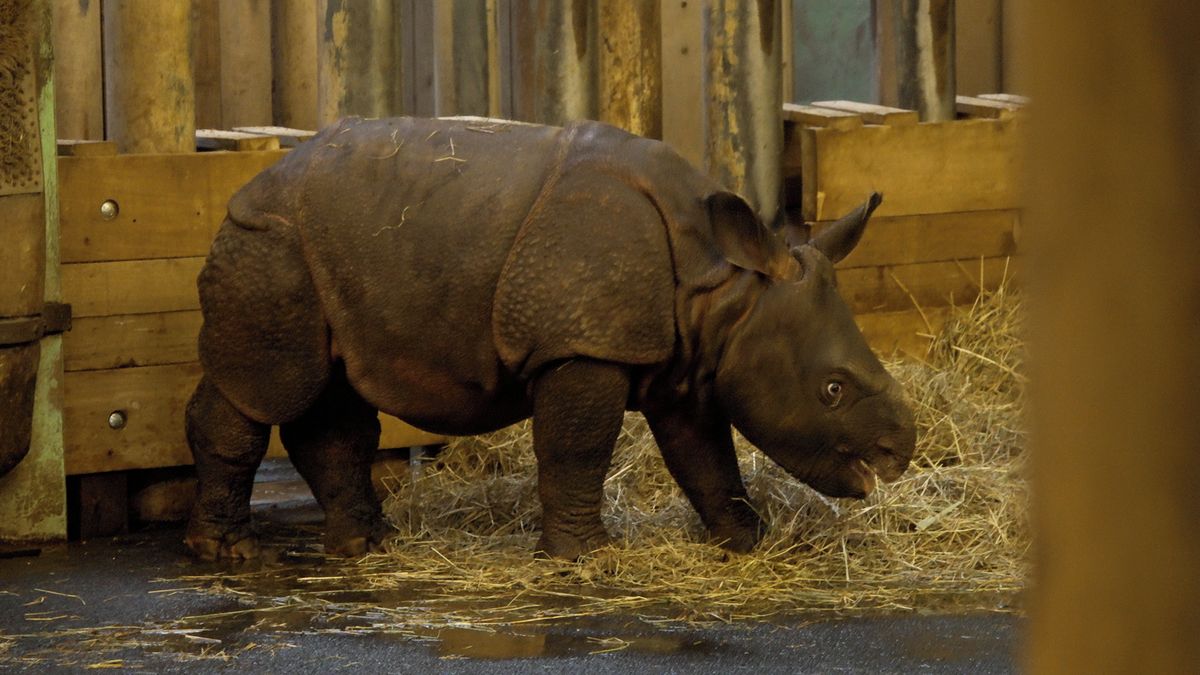 Sameček nosorožce indického Apu v Zoo Plzeň podle chovatelů prospívá, rychle přibývá na váze a odchov probíhá bez komplikací.
