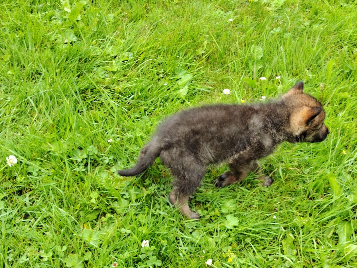 Podotkl, že výsledkem tohoto tlaku na zvířata, ale možná i dalších okolností, se přihodilo, že se vlčí smečka s mláďaty rychle přesouvala do klidné lokality. A jedno vlče, sotva čtyřtýdenní fenečka, zůstalo pozadu.