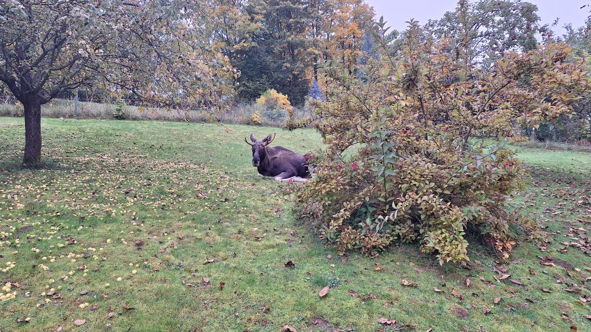 Hlídka následně zatelefonovala majitelce objektu, aby mohla na zahradu vstoupit. „Los ležel spokojeně pod jabloní a pojídal jablka,“ doplnila Burešová.