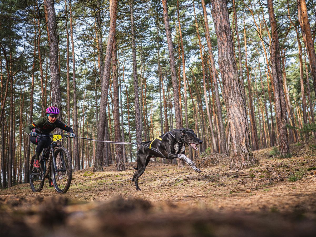 Oblíbenou disciplínou je také bikejöring, kdy za psem jede závodník na kole.