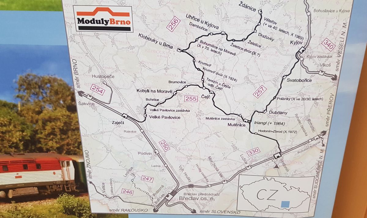 K prezentaci modelářů patří i mapa tratí s vyznačenými již zrušenými zastávkami či úseky.