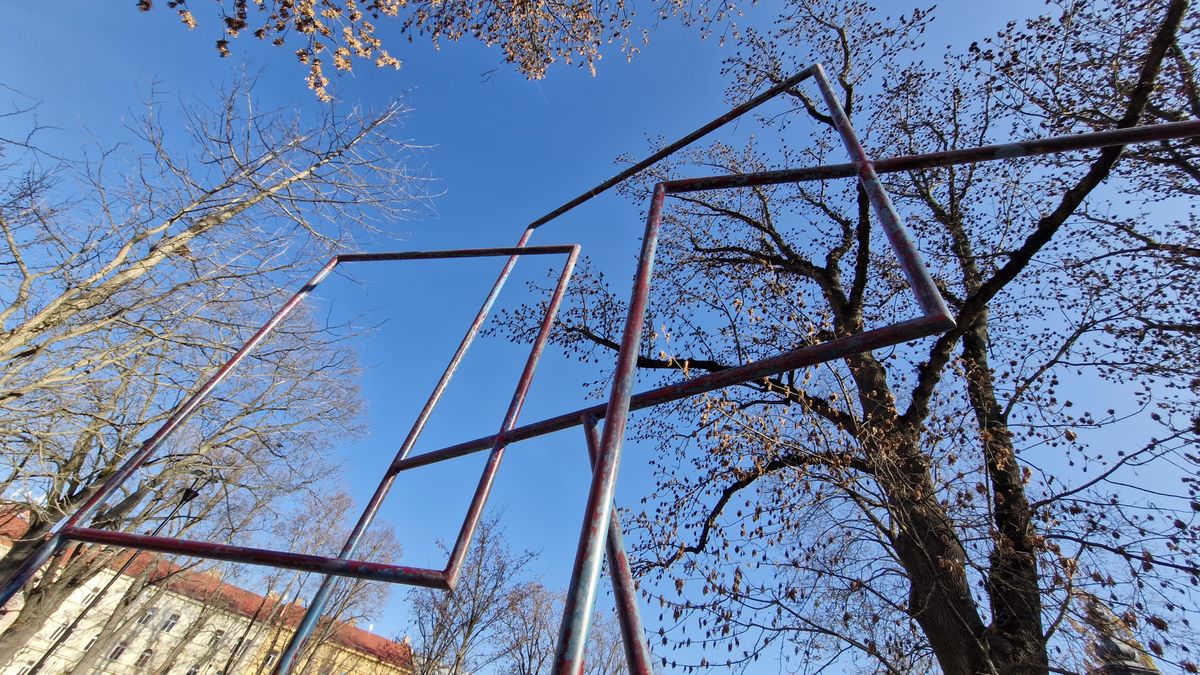 I když možná socha na někoho působí jako historické workoutové hřiště, není určena k tělocviku. Její interaktivita je v tom, že vybízí lidi ke zkoumání, odkud je nejlépe čitelná.