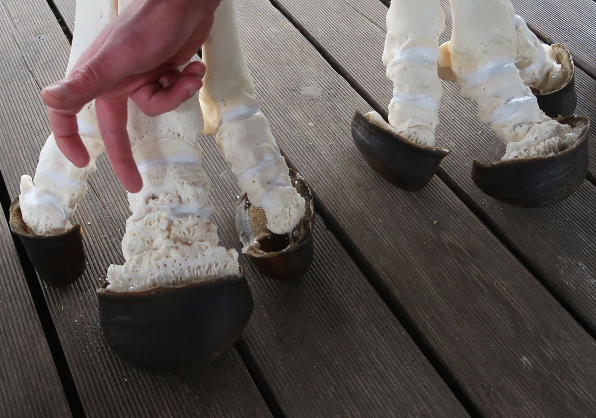 Kosti pak prochází různými chemickými preparáty, odmašťováním a bělením. Nejdelší měří přes metr a je to žebro, nejtěžší je třicetikilová lebka, nejmenší kosti jsou na ocásku. „Chrupavky si doděláváme sami,“ uvedl Hlivka. Jak, ale neprozradil. „To je naše výrobní tajemství, sofistikovaný léty prověřený postup.“