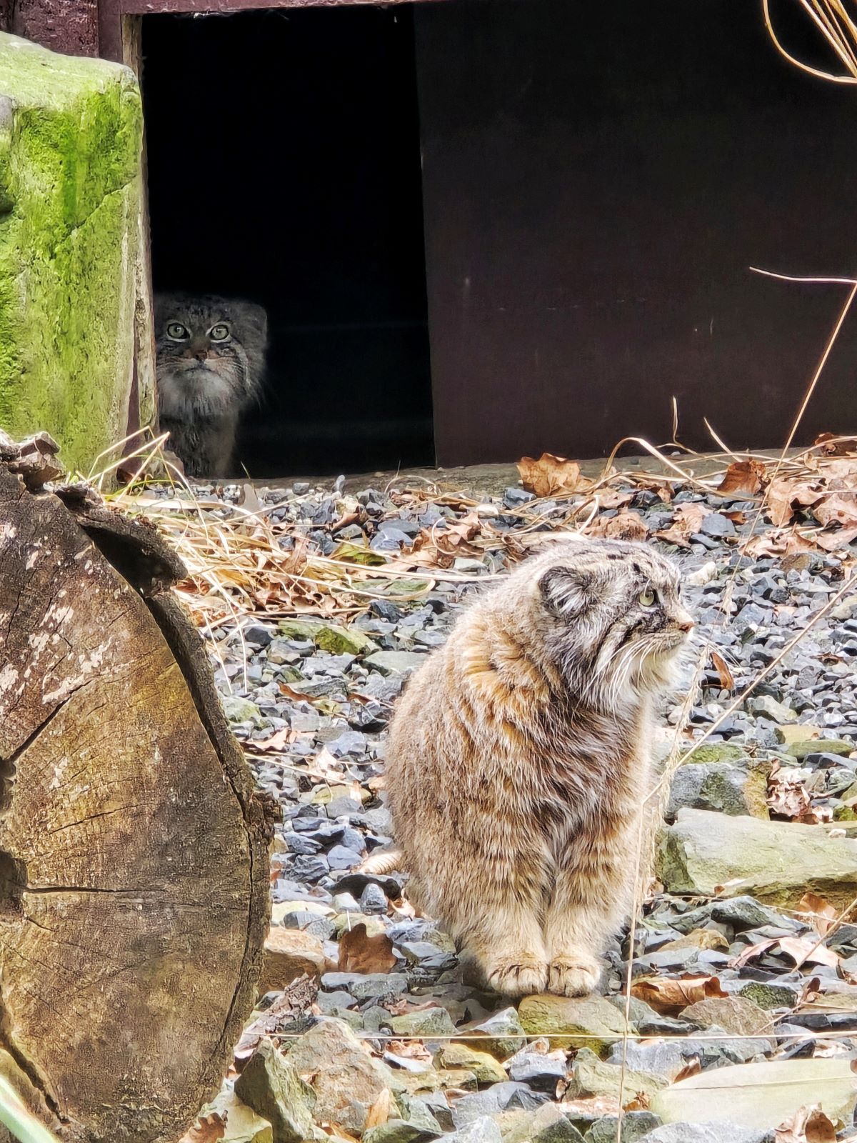 Samec první dny pobýval odděleně od samice v zázemí, aby si zvykl na nové prostředí. Zvířata ale na sebe mohla vidět, cítit se a také se slyšet. Vokalizace v období říje je pro manuly typická, byť pro chovatele těžko zachytitelná.