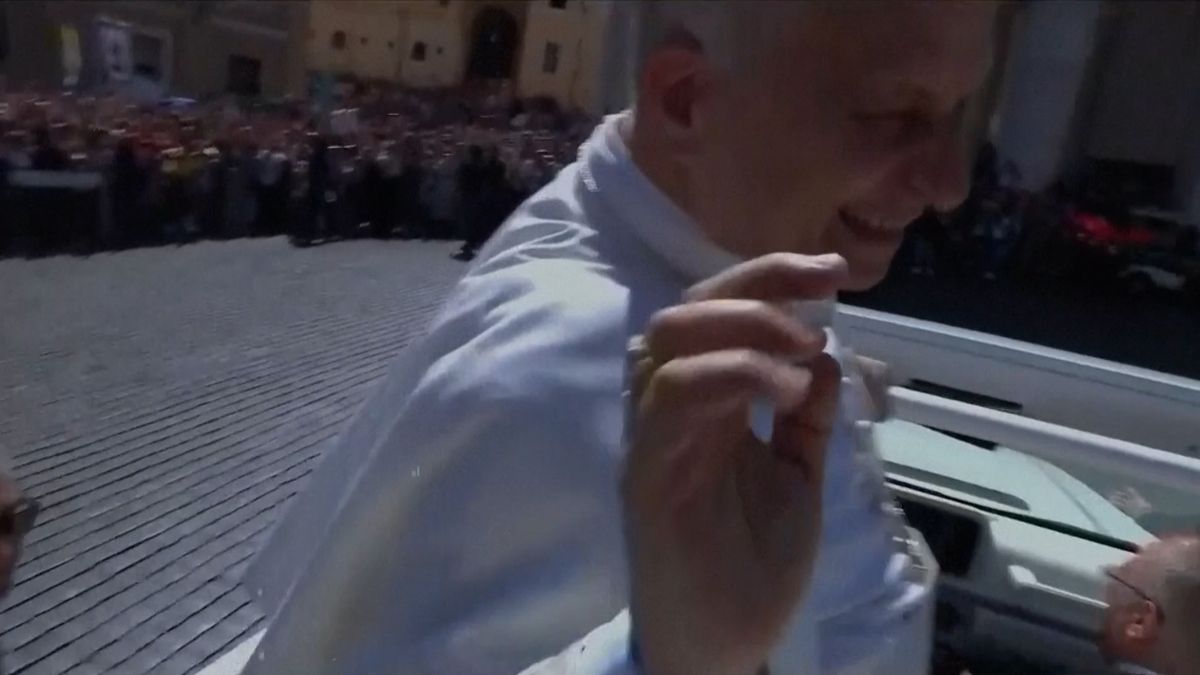 Lidé papeže pozdravovali, mávali vlajkami a házeli mu i plyšová zvířátka. Když se Lev XIV. pokoušel jedno chytit, ohnal se pravicí dozadu a nechtěně uhodil muže za kamerou.