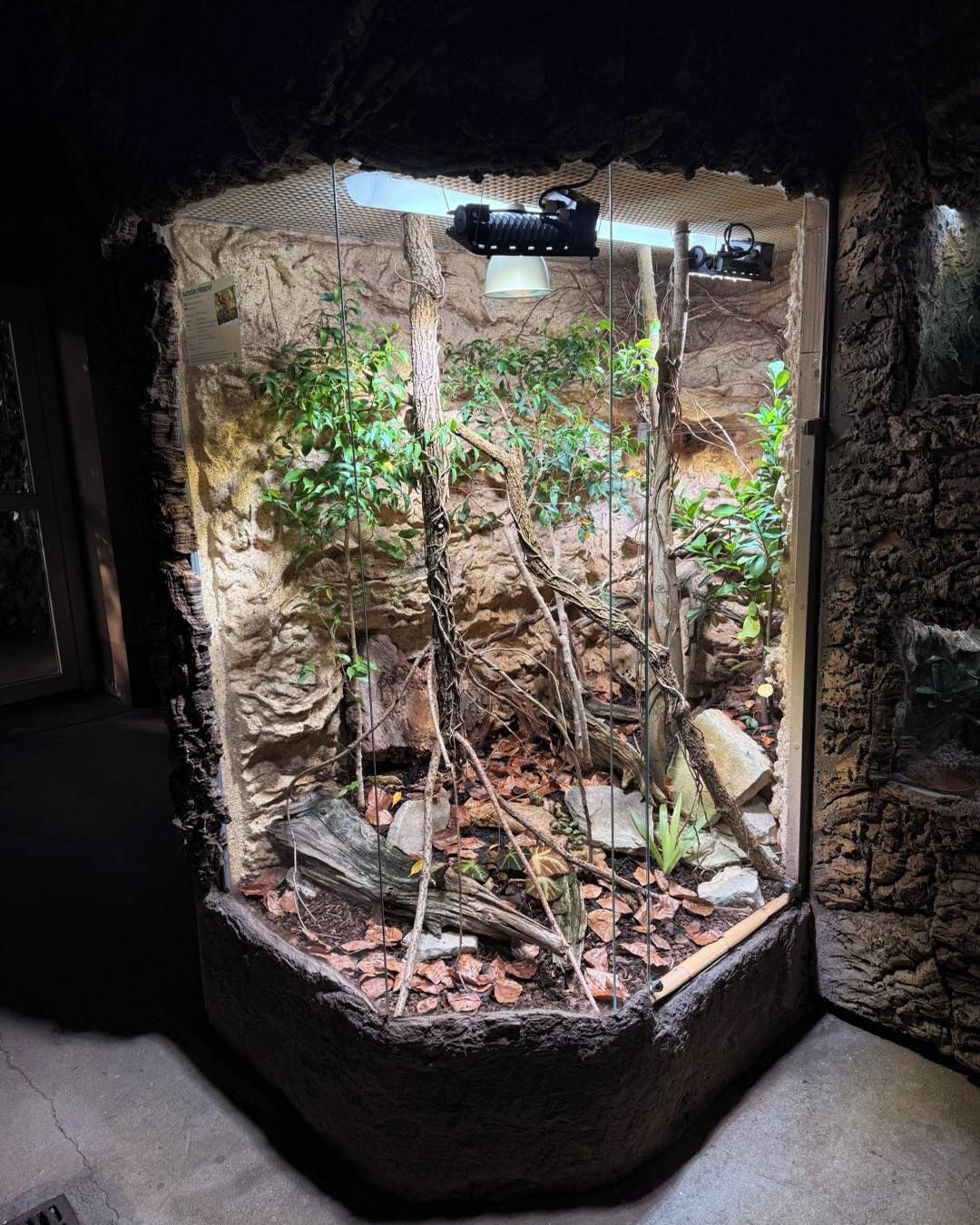 Expozice je v části pavilonu, která je věnovaná středoamerickým a jihoamerickým žábám. „Tahle centrální expozice je poměrně velká na to, aby tam byly pouze žáby, tak jsme hledali vhodného spolubydlícího, menší druh plaza, který nebude rušit ani žrát žáby,“ vysvětlila změnu Schranková.